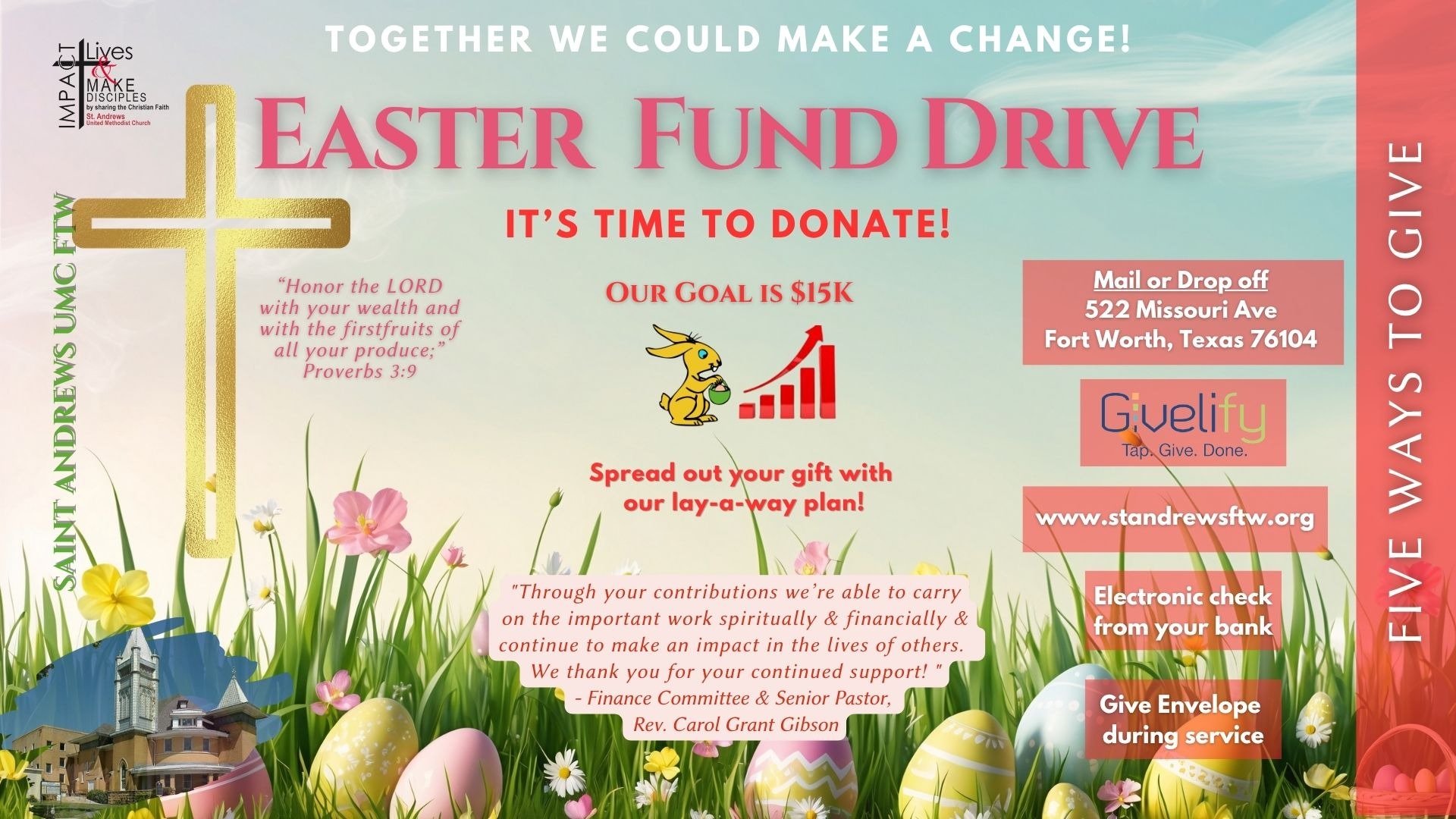Senior Pastor Rev. Carol Grant Gibson and the SAUMC Family.