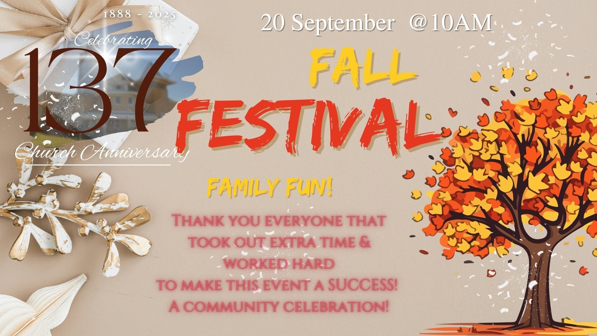 Thank you to everyone that took the extra time to work to make our 137th Anniversary Fall Festival yesterday a success. What time we had celebrating with visitors and children in our community.