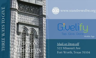 Click this blue Givelify Button here to give your tithes, offerings, order study materials, or Giving Campaigns.