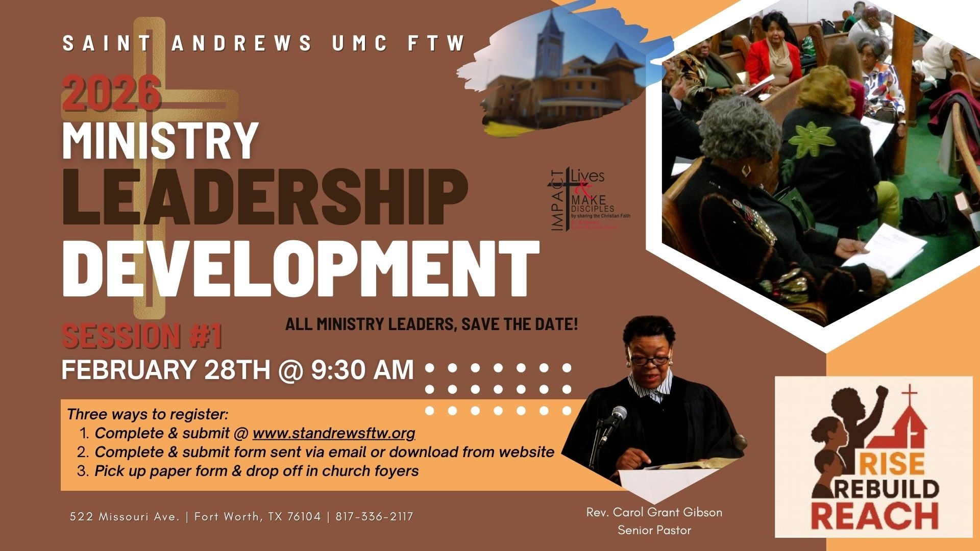Our first 2026 Ministry Leadership Development Session will be Saturday, February 28, at 9:30 am. We ask all ministry leaders to save the date and attend. Registration information will be sent by email and posted here on our church website.