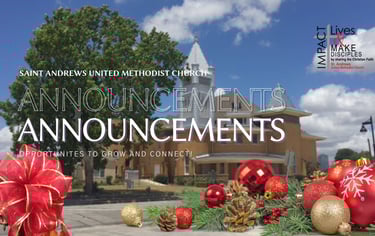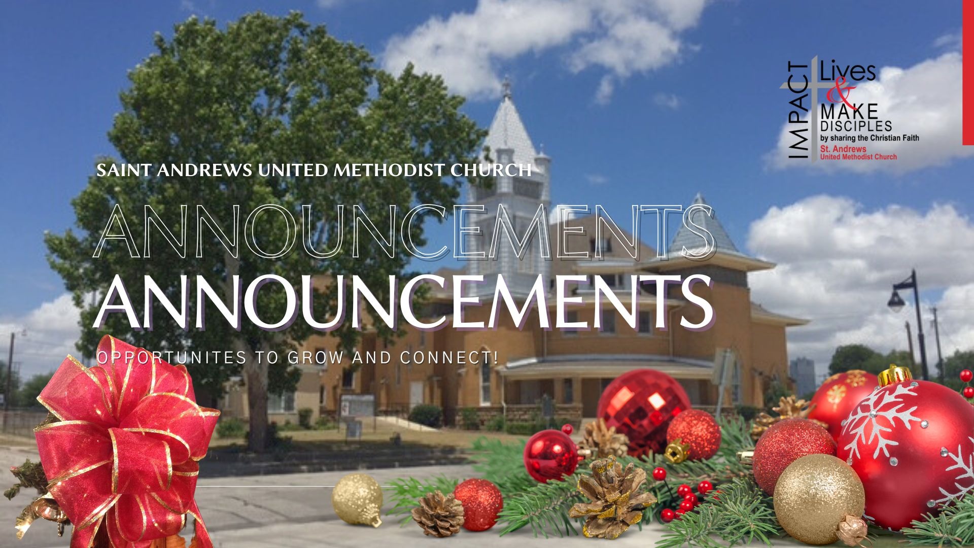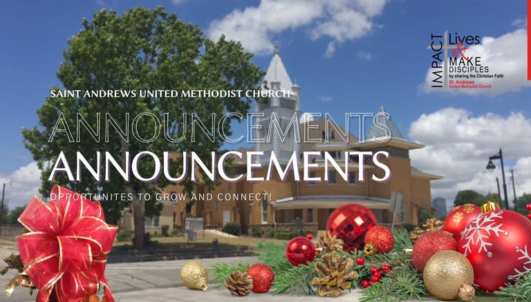 Saint Andrews Church Family and Friends, these are our Announcements, Discipleship Opportunities, and ways to study, serve, grow, and celebrate!